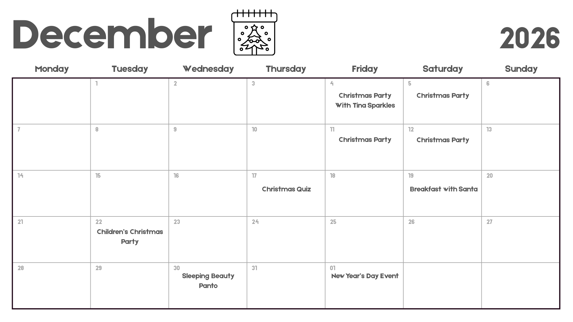 We’re looking forward to this festive season where we will be hosting some unforgettable celebrations, from lively Christmas parties upstairs in Clwb Poppies, indulgent festive menus and a range of fun festive events for all the family. Check out our calendar of events so far…